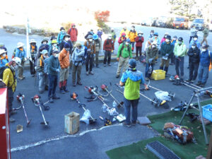 石鎚山系の登山道整備と安全な登山活動の醸成に取り組んでいる。1999年の設立以来、年2回の大規模な笹刈りや、木道修繕、倒木処理など、年間を通して登山道の安全確保に尽力。同時に、登山者への案内や安全登山講座、自然観察会なども開催し、登山者の安全意識向上を図っている。豊富な知識と経験に基づいた活動は、登山者からの感謝の言葉に支えられ、未来の「山の守り人」育成にも繋がっている。
