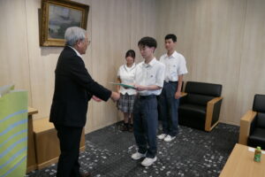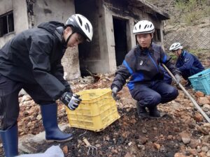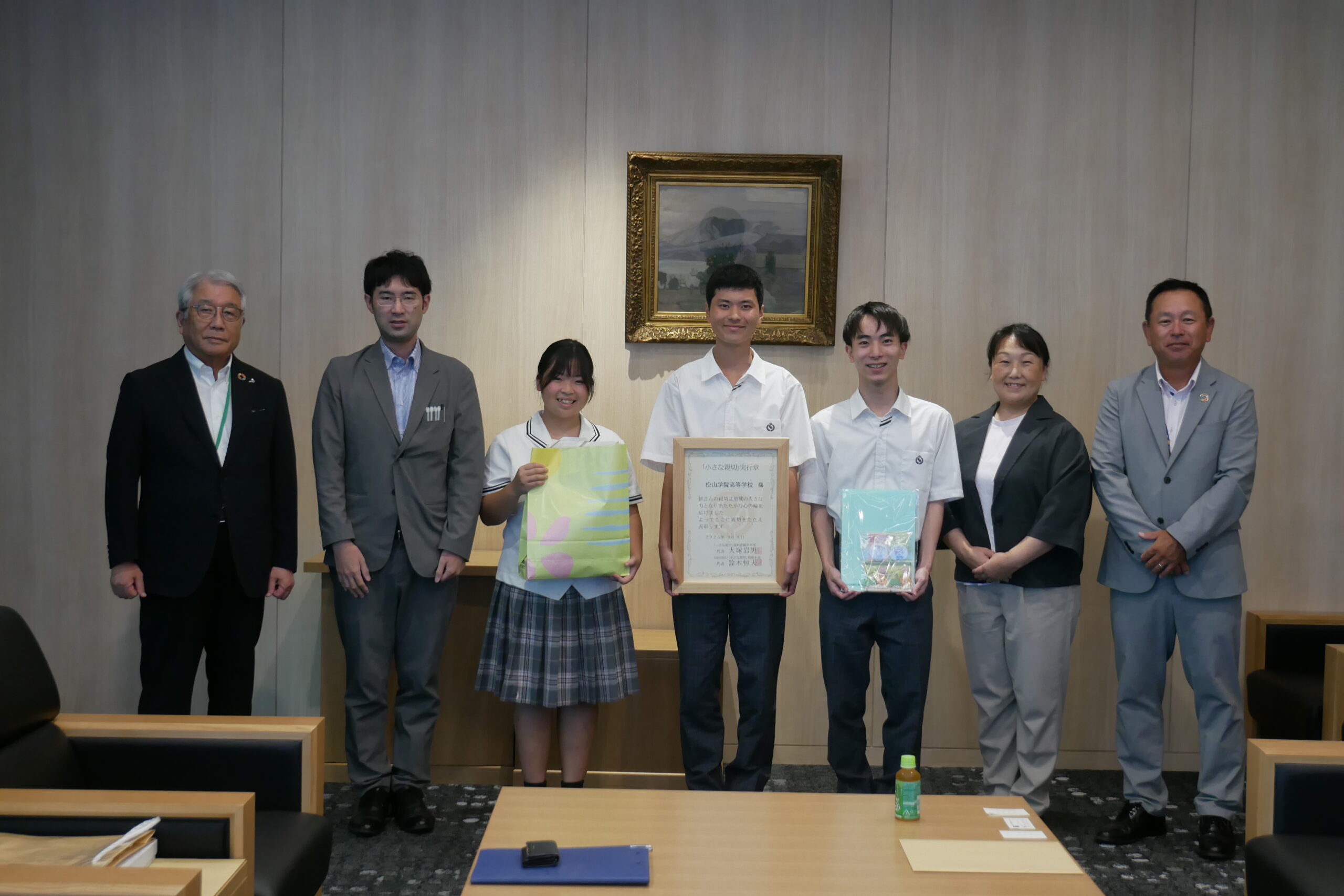 2024年1月の能登半島地震発生直後から、様々な支援活動を開始。NPO法人えひめ311(東日本大震災の被災者支援団体)を通じて、校内で集めた募金や支援物資の他、生徒手作りのマツガク特製甘夏ジャム等を寄贈した。また、生徒・先生有志がこれまで10回以上、輪島市と七尾市の現地ボランティアに参加。仮設住宅での支援物資配布や、豪雨災害後の家屋の片づけ等を実施した。その他、地元高齢者福祉施設への慰問や、地域清掃ボランティア、今治市の大規模山林火災復旧ボランティア等、多岐にわたる活動に取り組んでいる。